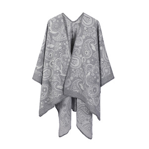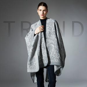 她信外贸爆款欧美春秋冬季新款女士提花腰果花佩斯利羊毛交叉披肩