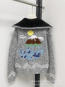 25秋冬南油高定L驴家时尚重工定染纱线宽松复古翻领针织开衫外套