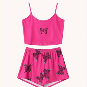 欧美大码跨境家居服夏季吊带吊带印花柔软蝴蝶睡衣简约两件套