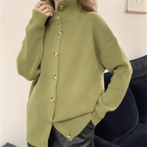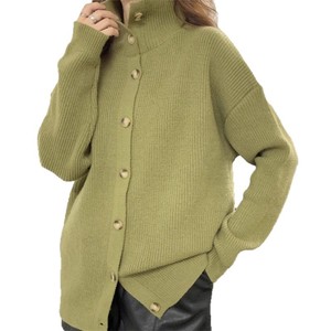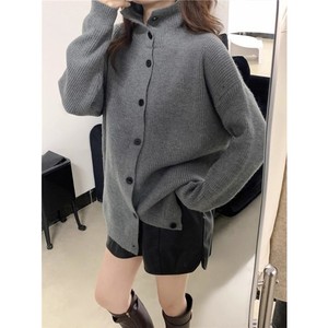 2025复古立领开衫毛衣女秋季宽松针织衫上衣外套潮纯色秋冬季可穿