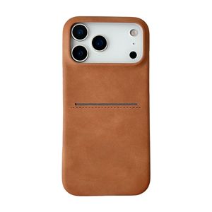 纯色皮质肤感插卡壳适用苹果17promax 17手机壳小众15/16无汗防滑