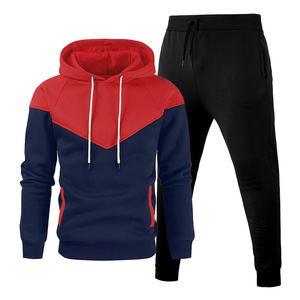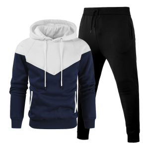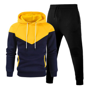 跨境春秋季套装运动健身休闲开衫连帽卫衣携带抽绳纯色卫裤套装