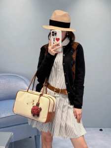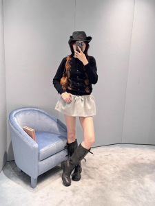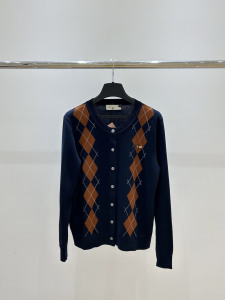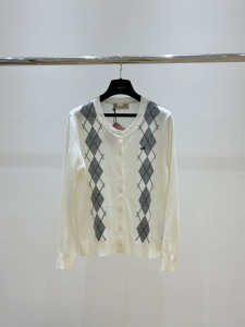 南油早秋菱格针织衫风撞色上衣修身V女25系复古领T恤显瘦学院长袖