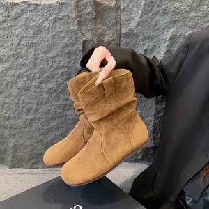 复古百搭内增高小短靴女2025秋季新款套筒圆头堆堆风短筒时装靴
