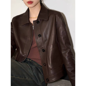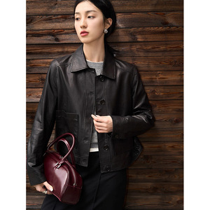 2025厂家直销全植鞣绵羊皮真皮轻涂胎羊皮皮衣外套女都市简约风