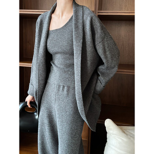 NS高级感2025女秋冬新款法式简约开衫+背心+阔腿裤三件套ss658
