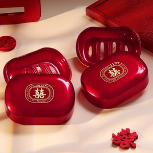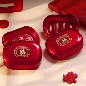喜吧结婚用品皂盒口杯婚礼娘家陪嫁新婚肥皂盒洗漱杯大红喜字牙杯