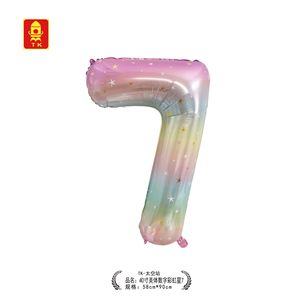 跨境亚马逊40寸美体数字彩虹星铝膜气球精装生日派对布置套装批发