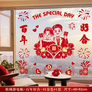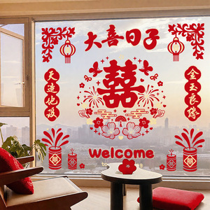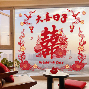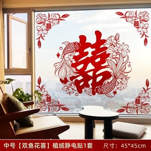 植绒喜囍字静电贴客厅婚房布置窗户窗花玻璃门贴纸装饰结婚礼专用
