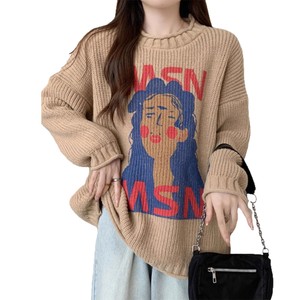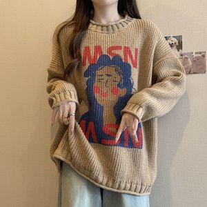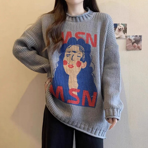 圆领毛衣女秋冬季2025新款复古印花美式潮牌宽松针织衫外套上衣