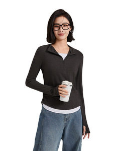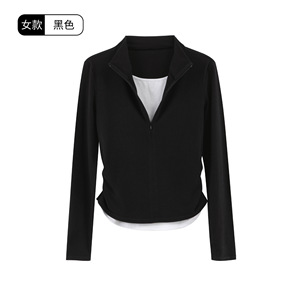 新款休闲女装半拉链假两件长袖T恤修身显瘦百搭春秋外穿打底上衣