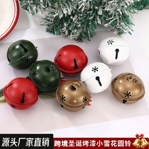 雪花烤漆5公分圣诞铃铛镂空雪花打孔灯串挂件彩色铃铛diy挂件批发