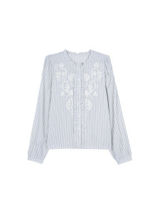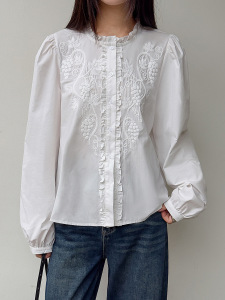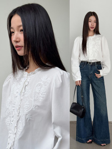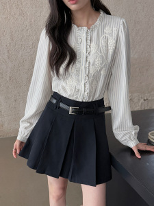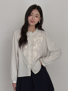 【氤氲梦】歌铭法式复古木耳边条纹刺绣衬衫女秋季通勤上衣N470C