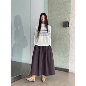 【瑞拉的裙摆】歌铭纯色松紧腰中长款伞裙女装秋季a字半身裙N489C