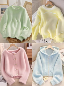濮院秋冬季针织开衫女士上衣毛衣女可爱糖果色软糯十三行女装批货