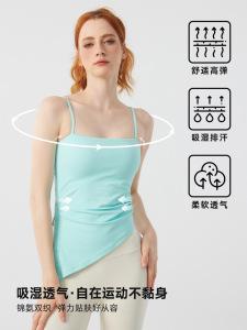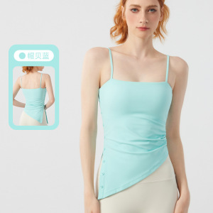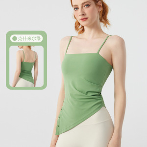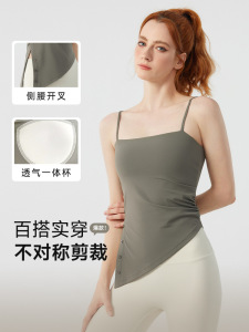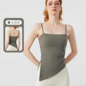 新款修身瑜伽服带纽扣斜开叉显瘦瑜伽上衣女固定胸垫吊带健身背心