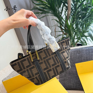 F家2025新款老花帆布菜篮子单肩包腋下包出行轻便大容量时尚百搭
