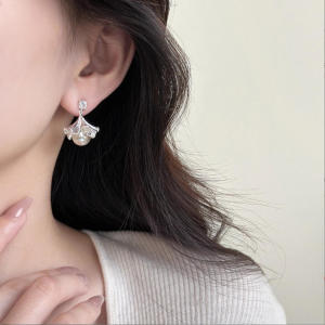 小众扇形银杏叶珍珠耳钉女2025新款爆款轻奢设计高级感个性耳饰潮