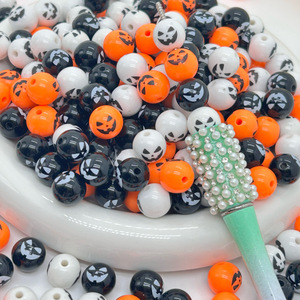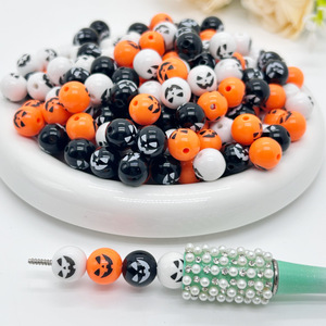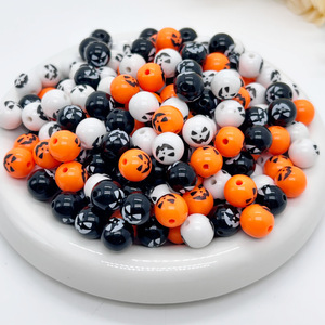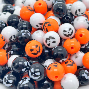 万圣节12mm亚克力南瓜笑脸印花圆珠 DIY制作串珠笔手机链饰品配件