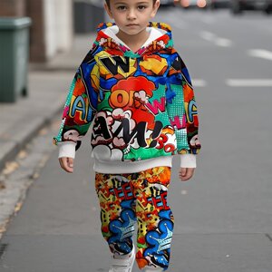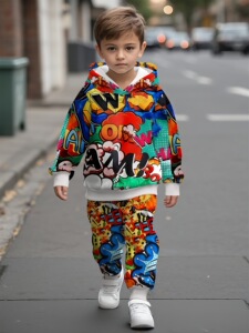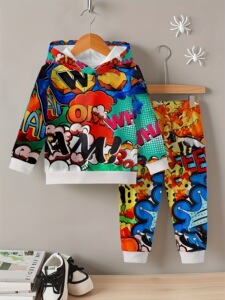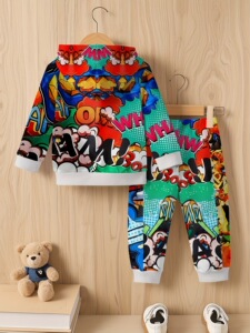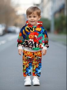 宝宝男女童连帽卫衣套装,时尚字母印花设计,春秋舒适休闲外出必