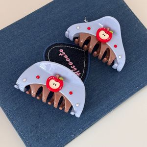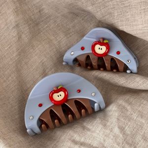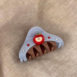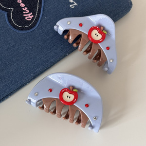 韩版小众设计感闪钻苹果拼接半圆质感抓夹百搭清新盘发鲨鱼夹发饰