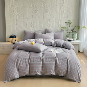 2025新款简约全棉色织提花斜纹水洗棉纯棉被套罩床单床笠床上四件