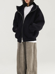 美式复古街头高级感廓形拉链卫衣男女秋季宽松休闲连帽衫运动外套