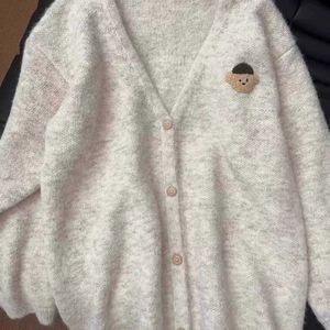 宽松小熊新款针织春秋外套上衣开衫慵懒高级感韩系女毛衣领软糯