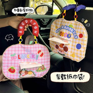 车载纸巾挂袋卡通带手提大容量车用纸巾套布艺顺滑抽纸盒节省空间