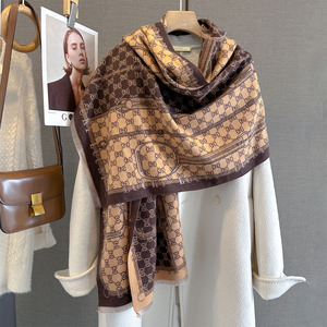 秋冬季新款百搭爆款仿羊绒围巾高端大气经典字母锁链印花围脖披肩