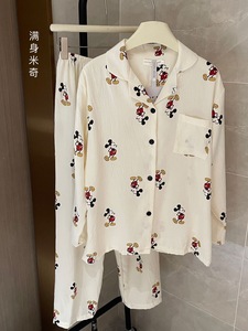 KXM秋日甜心泡芙天丝棉睡衣套装长袖长裤可爱甜美宽松翻领家居服