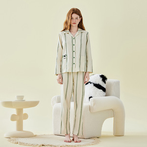 熊猫洗澡黄条长袖长裤女 W641