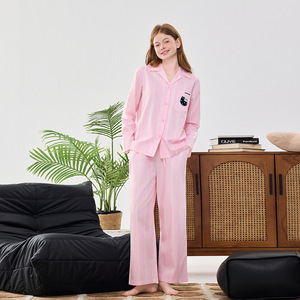 粉白条浣熊长袖长裤女W3104