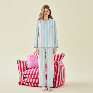 曼妮猫条纹长袖长裤女W923