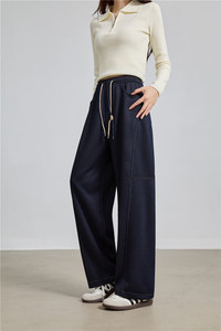 蓝色牛仔裤女秋季2025新款高腰垂感休闲慵懒抽绳直筒阔腿裤