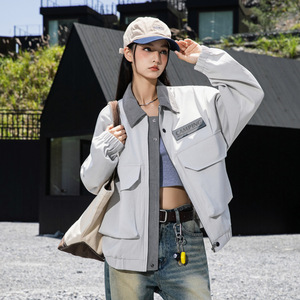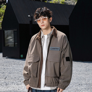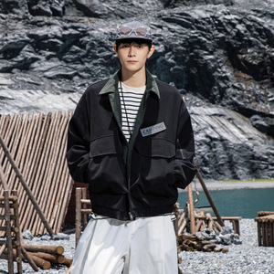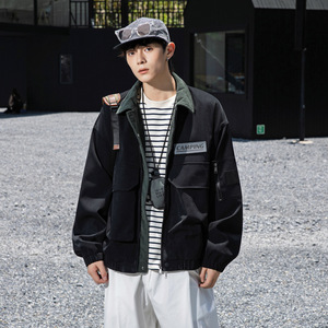源头工厂2025秋季新款工装夹克男美式潮牌大码复古撞色拼接大口袋