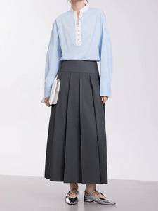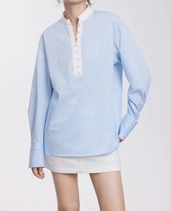 ELLE蓝白条纹新中式小立领小衫女2025秋季新款时髦优雅休闲衬衫