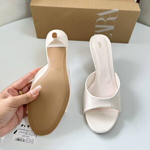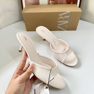 ZA高跟鞋女2025年春夏季新款包头时装凉鞋细跟皮带扣尖头后空单鞋