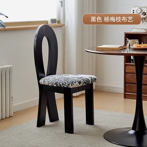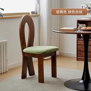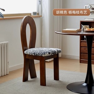法式复古餐桌椅子实木餐椅家用凳子靠背椅北欧中古风钥匙扣人鱼椅