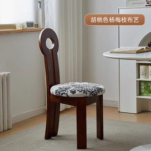 胡桃色实木+花色软包坐垫(钥匙椅)