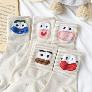 24新款搞怪卡通搞怪表情女ins潮秋冬趣味点子纱百搭网红学生袜子