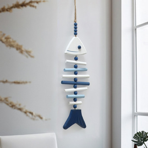 地中海风格木质大小鱼串鱼骨挂件创意渔网挂饰家居墙上装饰品壁饰