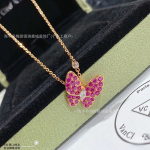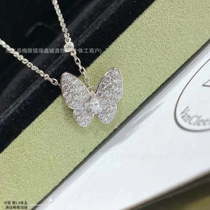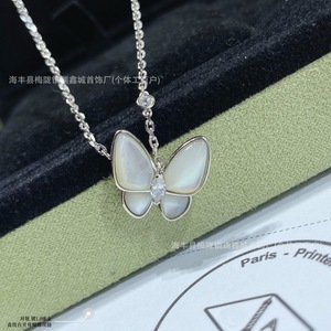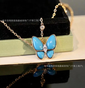 高版本蝴蝶满钻白贝母项链女厚镀18K金cnc精工绿松石吊坠工厂直销