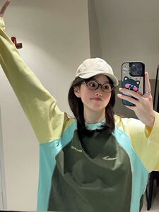 纯棉韩系撞色插肩袖圆领卫衣女2025秋季大码设计感小众情侣上衣潮