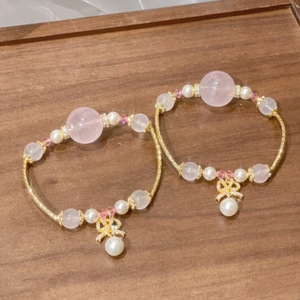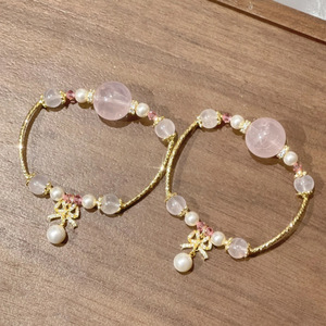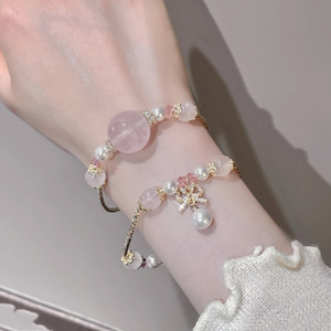 圣诞蝴蝶结天然莫粉水晶华子手串手链女可爱甜美闺蜜手饰抖音爆款