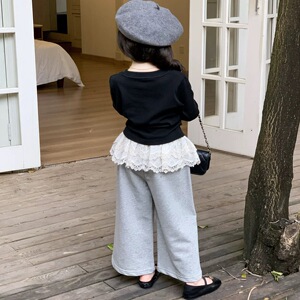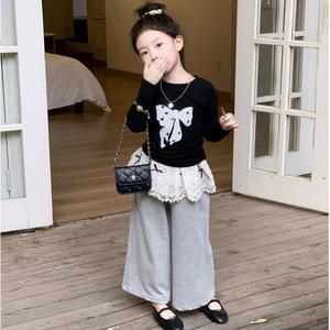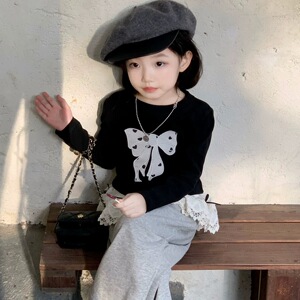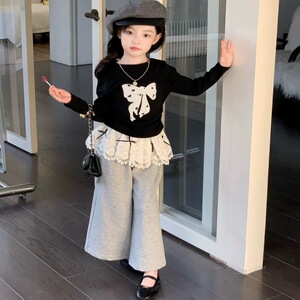 女童上衣2025秋季新款童装女孩洋气蝴蝶结屁帘裤儿童春秋T恤卫裤