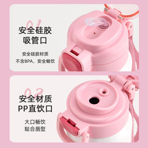 迪士.尼儿童保温杯316不锈钢小学生幼儿园上学专用带吸管喝水杯子