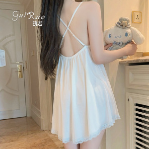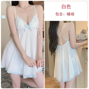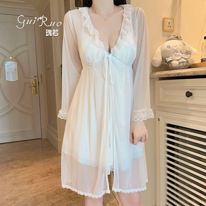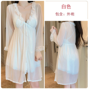 DZ瑰若品牌内衣法式甜美网纱冰丝加胸垫睡裙外袍家居服套装XK5639
