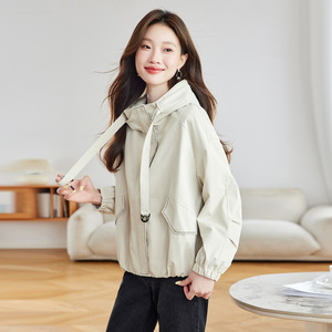 风衣外套女秋季2025新款小个子休闲连帽夹克女士洋气减龄百搭上衣