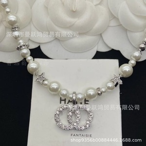 香奶奶家高品质带标双C星星满钻大小珍珠项链女小香风锁骨链批发